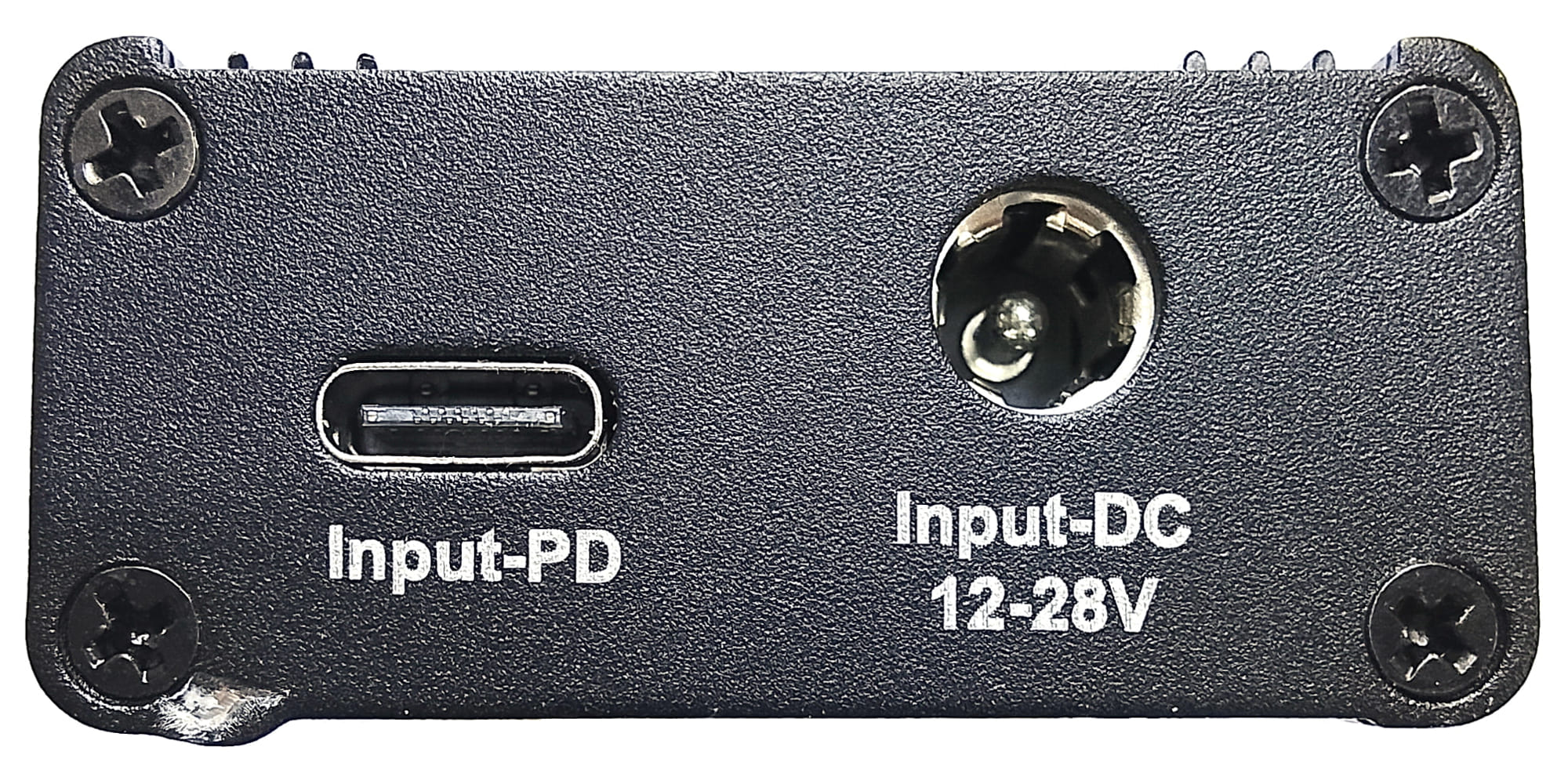 С задней стороны девайса только входные порты Type-C и 5521 (диаметр 5.5 мм, плюс по центру, длина штеккера по стандарту 14 мм, но тут достаточно 10 мм). Похоже, винты при сборке забивали молотком, иногда промахиваясь: